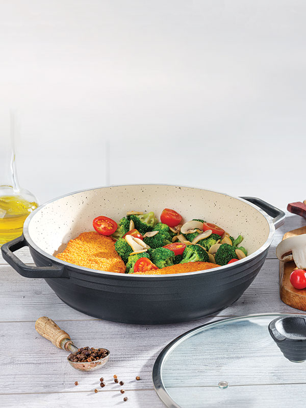 دایکست گونه ای از ریخته گری است که مواد مذاب، تحت فشار به درون قالب هایی به شکل دلخواه تزریق و سرد می شود ، به این ترتیب امکان تولید قطعات فلزی یکدست ، صاف و مستحکم فراهم می گردد. صنایع تولیدی عروس این ظروف را با پوشش نچسب در تنوع رنگ های مختلف به بازارهای داخلی و خارجی عرضه می کند.